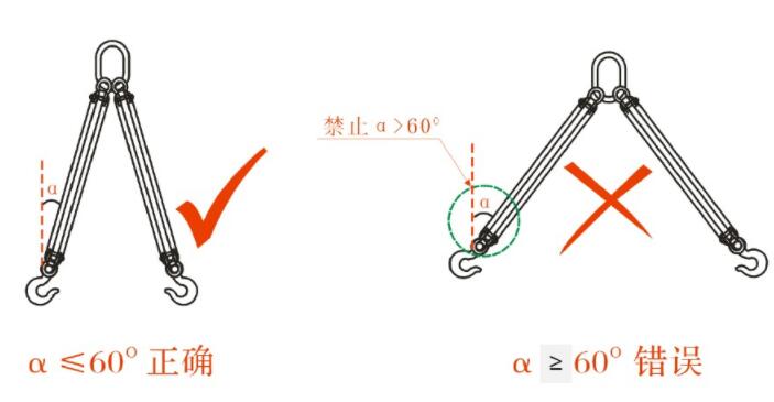 3、成套索具吊裝時(shí),應(yīng)避免吊裝角度超過(guò)60°。